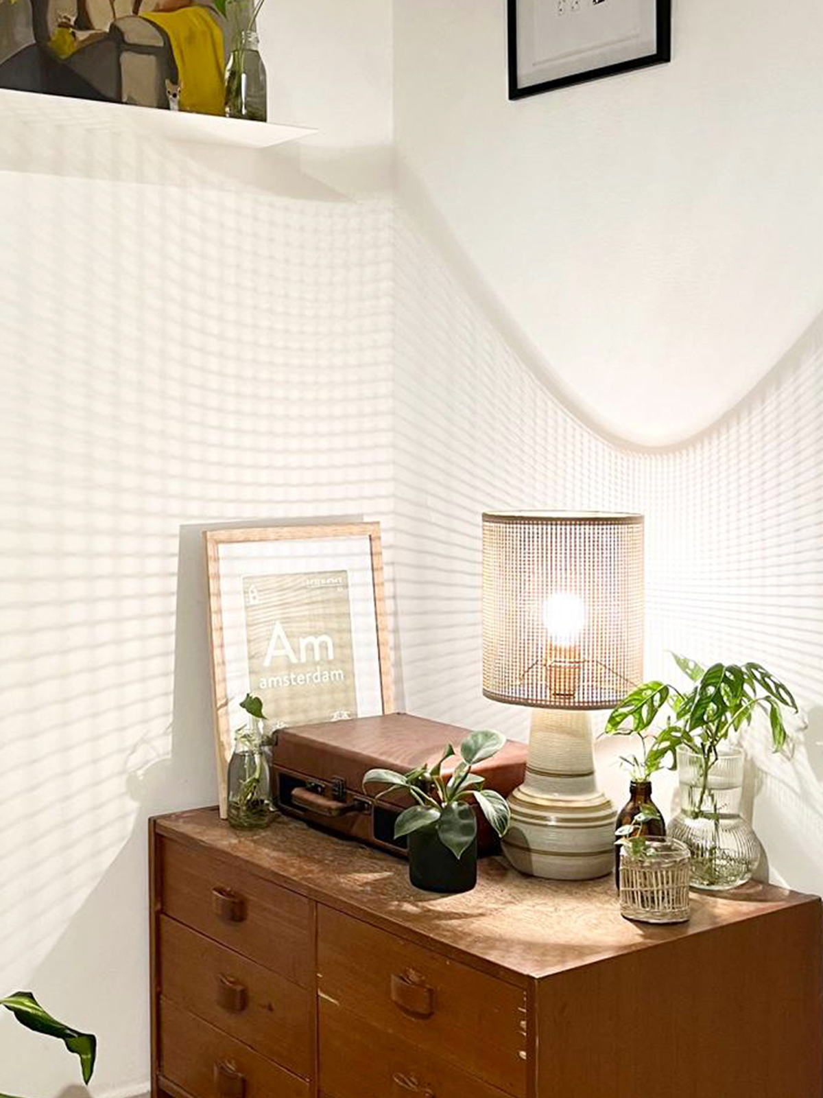 המנורה הזאת שינתה לי את האווירה בבית, האהיל יוצר משחקי צל מדהימים על הקיר ומוסיף קסם לחלל.