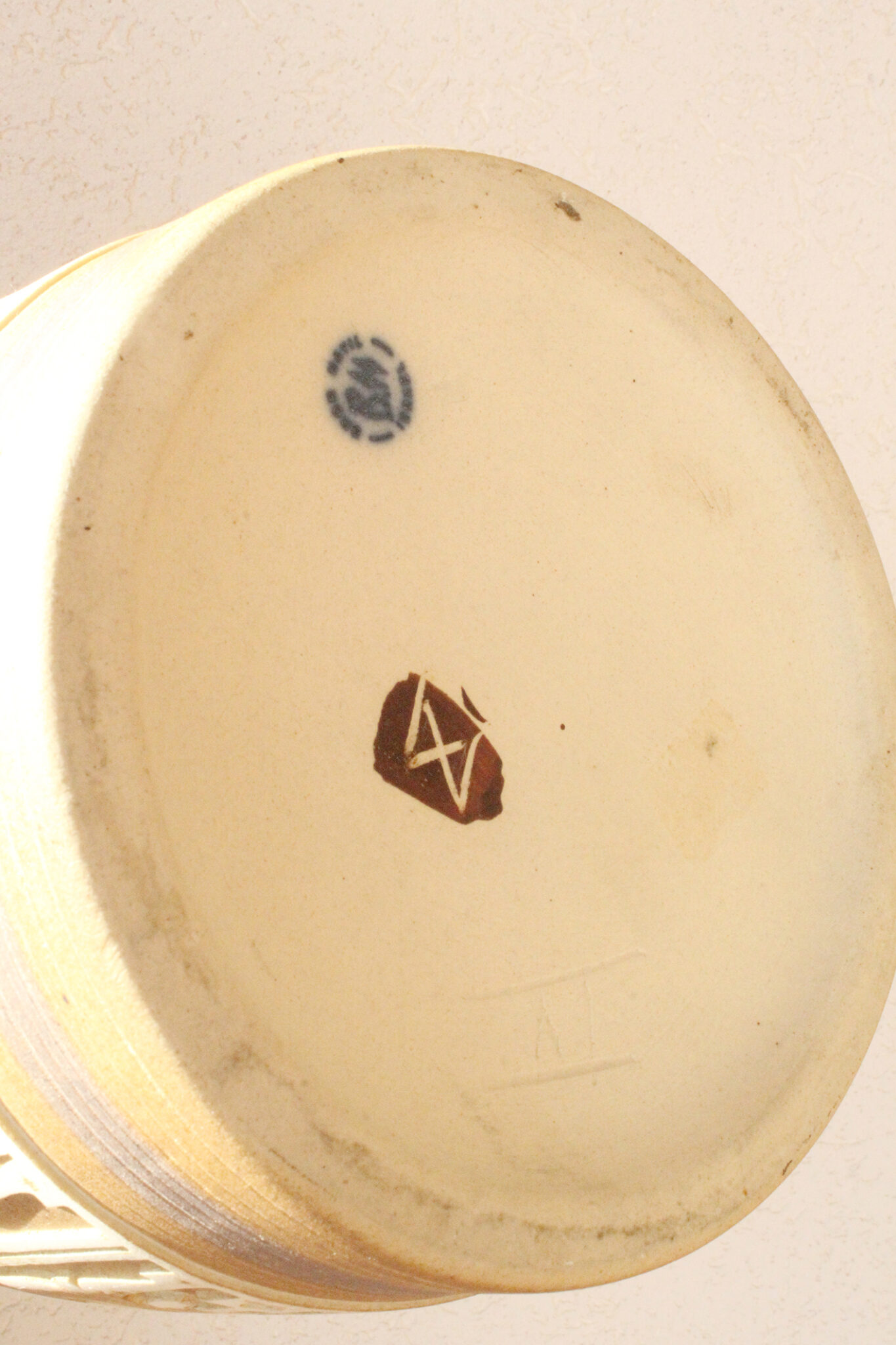 הכלי חתום בחלקו התחתון, עדות למקוריותו ולעבודת היד האותנטית שמעניקה לכל פריט את אופיו הייחודי.