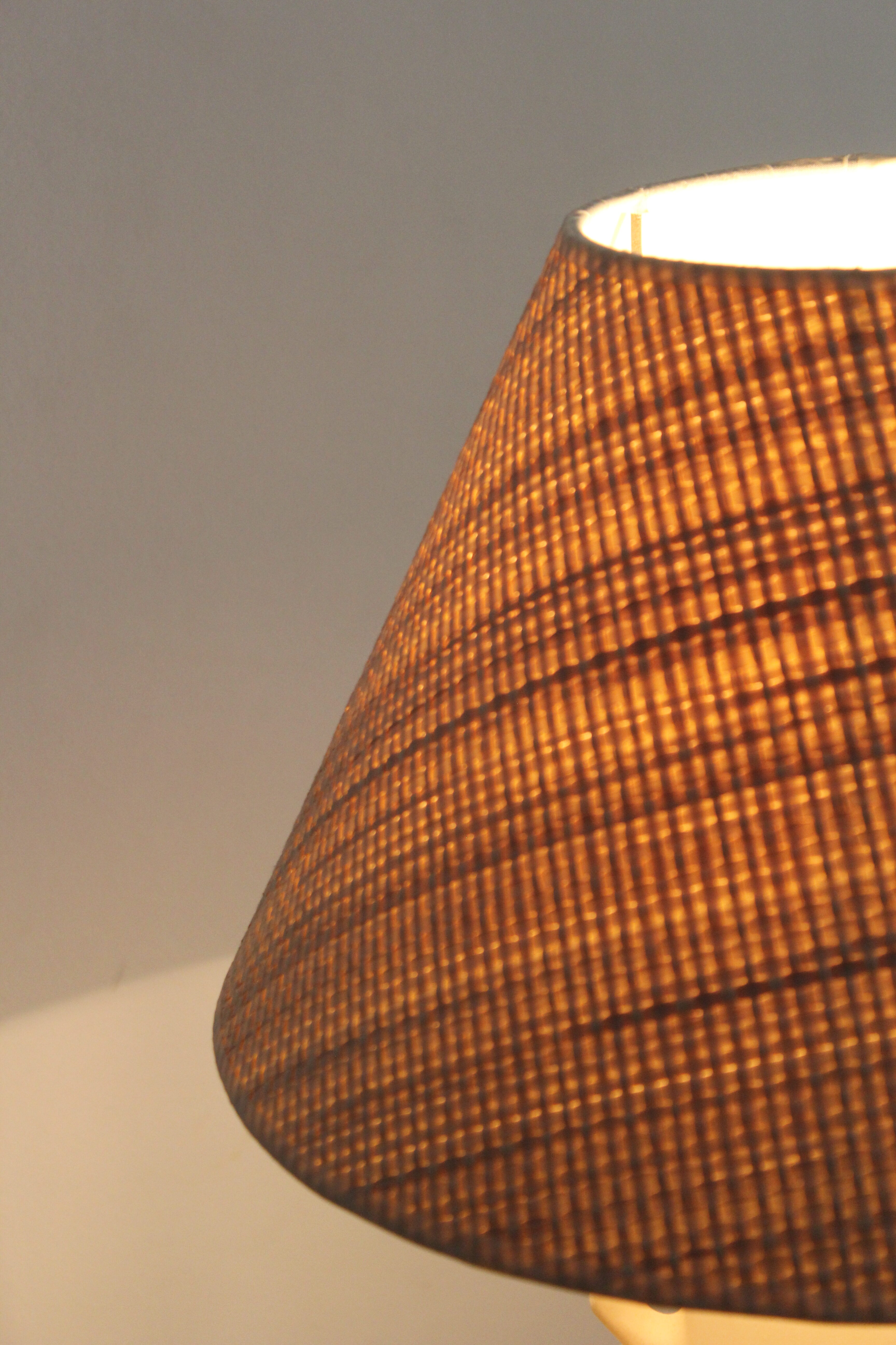 המנורה משתלבת עם אהיל קש טבעי ארוג בגוון בהיר, היוצר מראה חם וטקסטורלי ומפזר אור רך ונעים בחלל. תתאים לשידות לילה, קונסולות או כפינת תאורה חמימה בסלון או בחדר השינה.