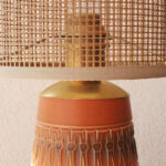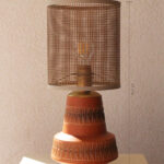 Hoshen מנורת שולחן פיסולית. עשויה מכלי קרמיקה מקורי שנוצר במפעל הקרמיקה "כפר מנחם"- מפעל שפעל בקיבוץ כפר מנחם משנות ה-60-90 וייצר מגוון רחב של כלים שהיו בהשראת התרבות המקומית ונופי הארץ. הפריטים שייצרו נעשו בעבודת יד והתאפיינו בטכניקות אומנותיות שהיו חדשניות לאותה התקופה.