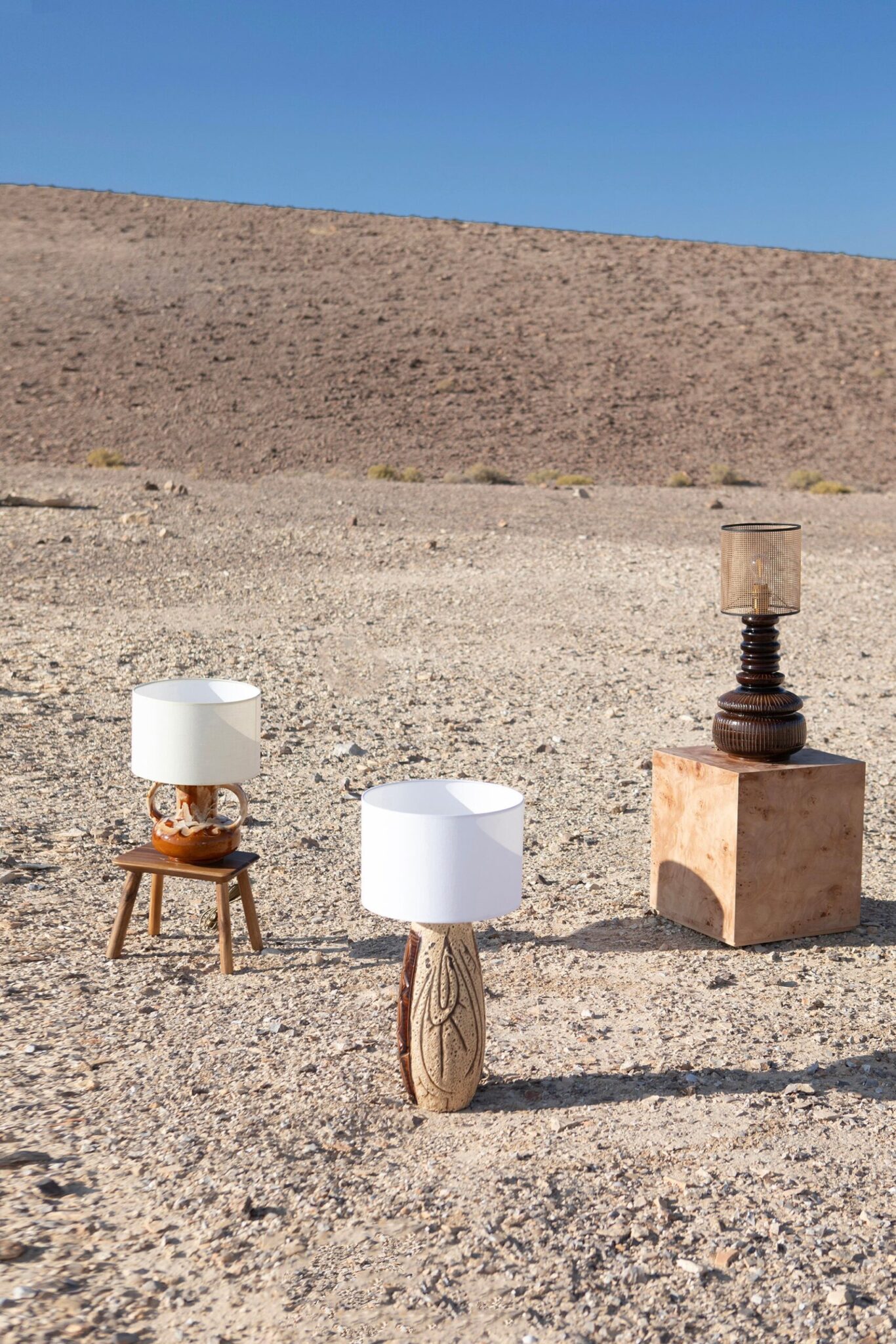 Inbar גוף תאורה עם נוכחות מרשימה המשלב בין אומנות לפונקציונליות. הבסיס עשוי מכלי קרמיקה ישראלי מקורי, נוצר במפעל הקרמיקה "כפר מנחם"- אחד מהמפעלים הבולטים שפעלו בארץ בין שנות ה- 60-90. הכלים שייצרו במפעל התאפיינו בעבודת יד מוקפדת בזיגוגים יחודיים, בצבעים חמים ובטכניקות אומנותיות. ההשראה שממנה הם שאבו לעיצוב הכלים הייתה בהשראת התרבות המקומית ונופי הארץ.