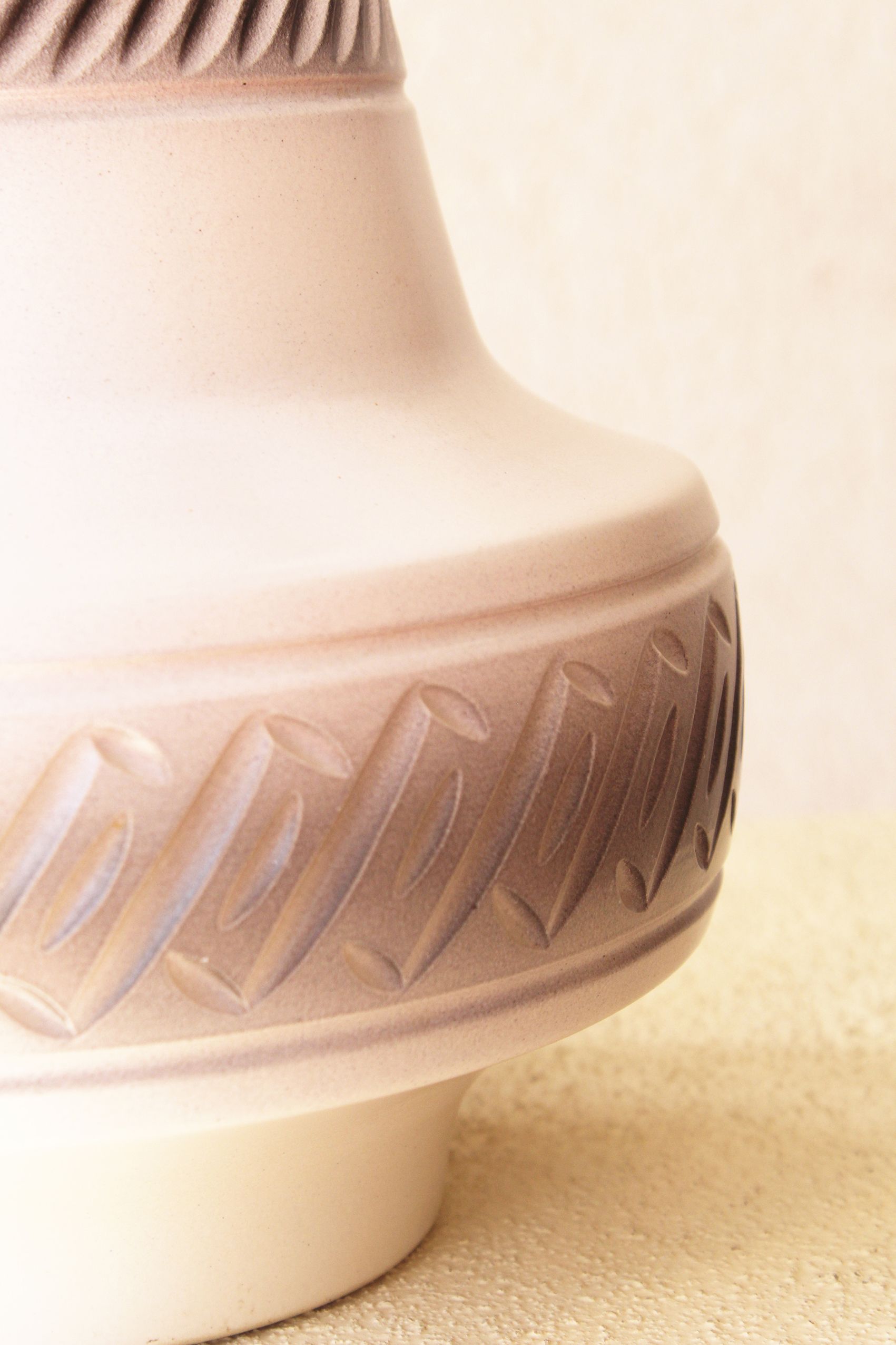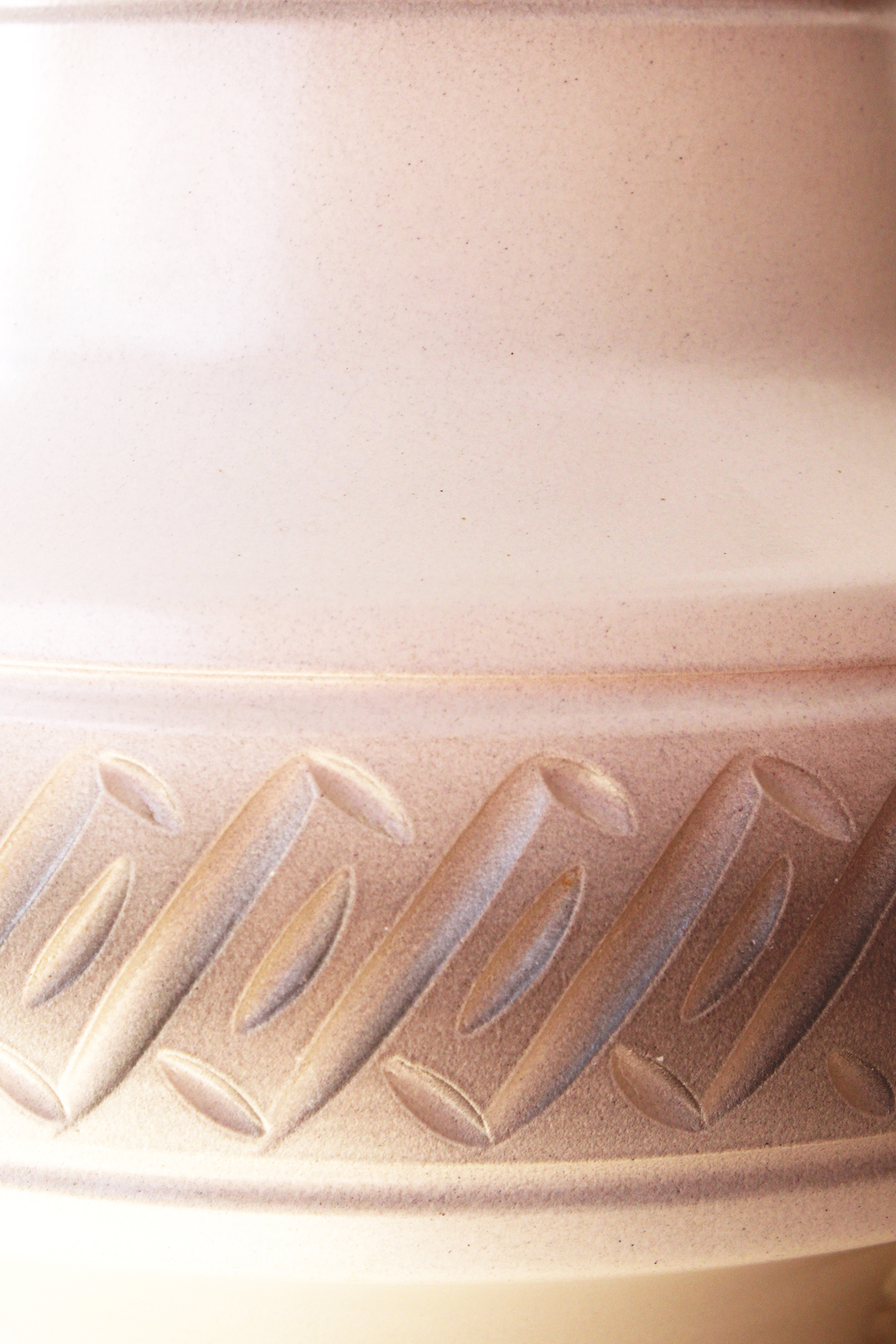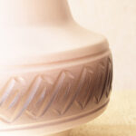 הכלי צבוע בגוון לבן למראה נקי עם נגיעות אפורות שנוספו בטכניקה צביעה ידנית ליצירת עומק וייחודיות. על הכלי עיטורים גרפים בעבודת יד שמעשירים את העיצוב והופכים את הפריט לאומנותי.