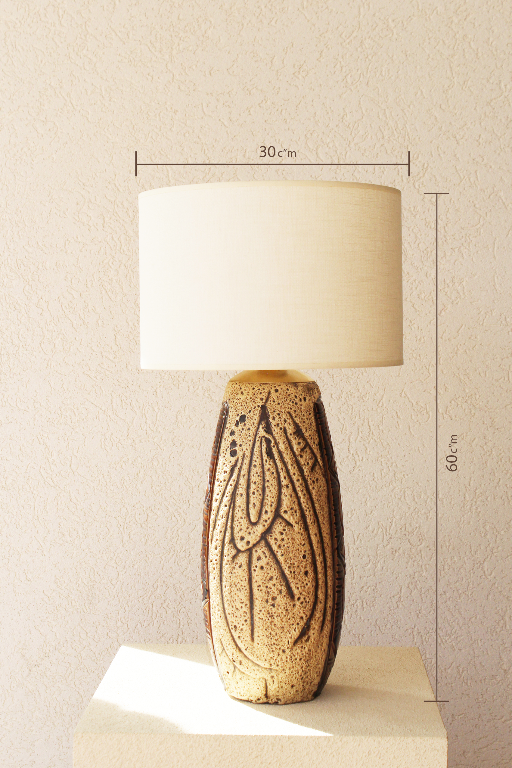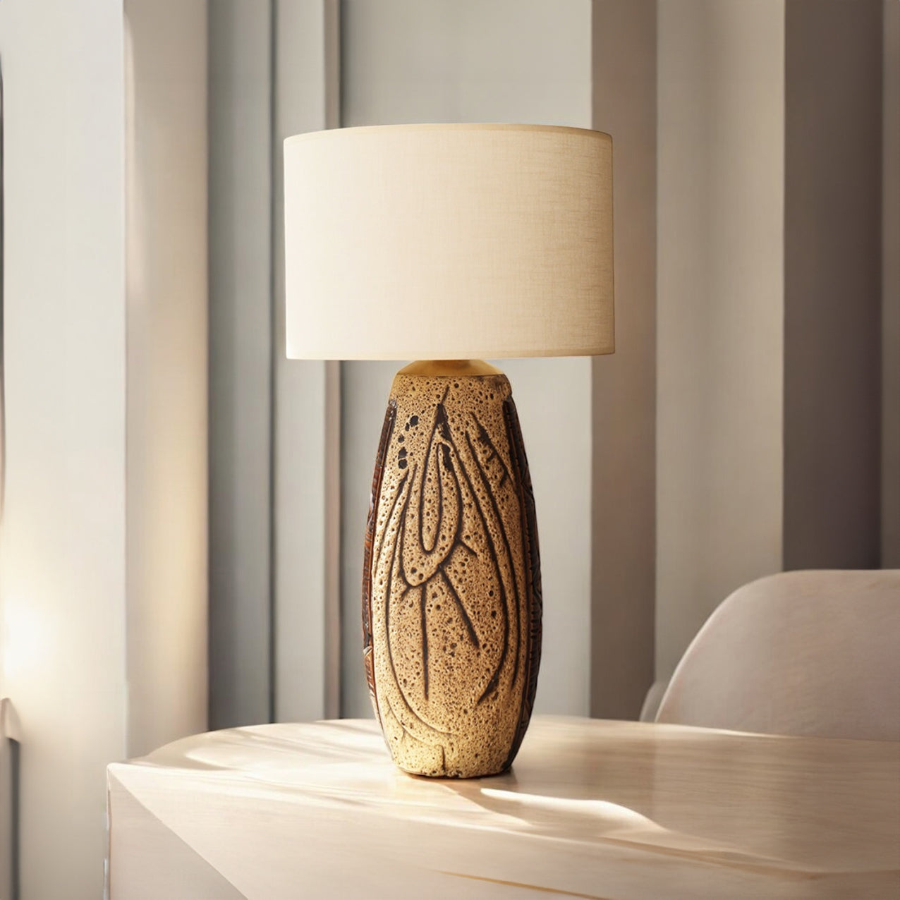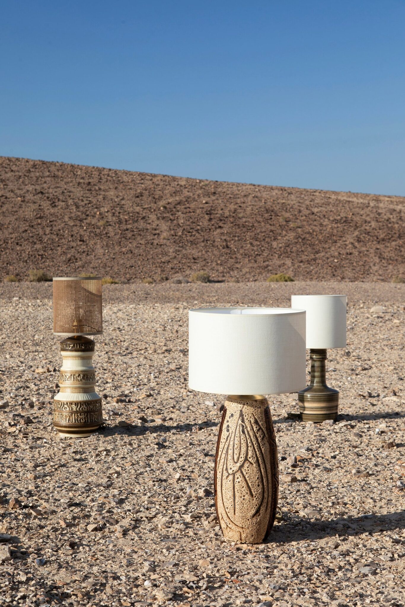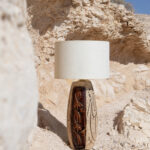 Tzukim היא מנורת שולחן מרהיבה בשילוב רוך וחיספוס. בסיס המנורה עשוי מכלי קרמיקה ישראלי מקורי מבית "כדן" – סטודיו לקרמיקה שפעל בבאר שבע בשנות ה -60. הסטודיו הוקם ע"י הקרמיקאיות יוכבד מרקוס ויהודית מאיר, שפעלו מתוך חיבור עמוק לאדמה, לחומר המקומי ולסביבה המדברית. עבודותיהן התאפיינו בשימוש בחומר גלם מהנגב ובשריפה בטמפרטורות גבוהות, שהעניקו לכל כלי מראה ייחודי וטקסטורות טבעיות.