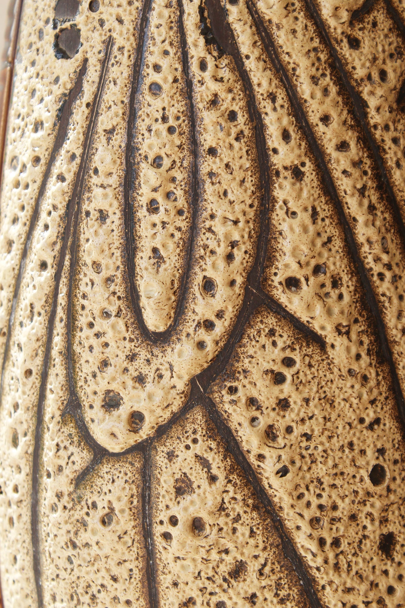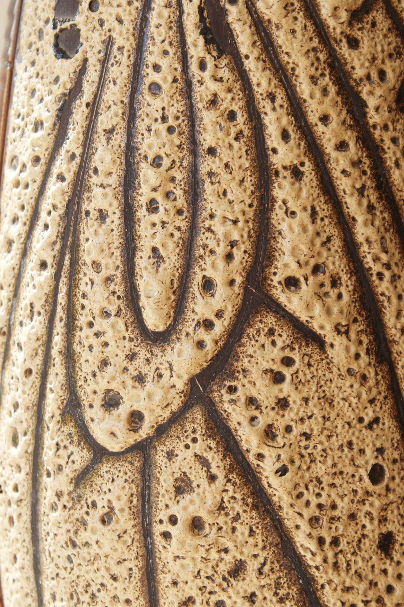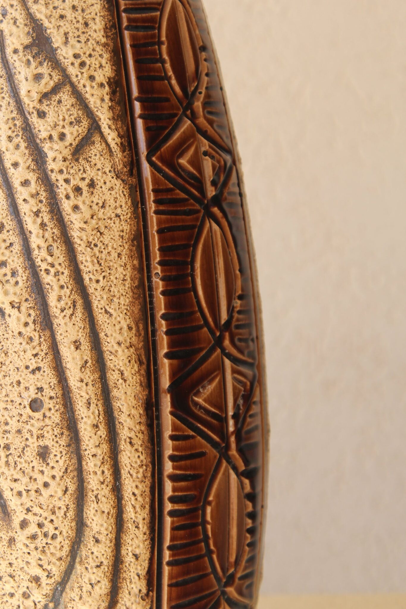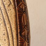 הכלי מורכב משתי טקסטורות שונות ומגוונות הנעשו בעבודת יד. האחת במרקם נקבובי עשיר בגוון בז', במראה טבעי ומחוספס. השנייה מאופיינת בחריטות גאומטריות גרפיות בגוון חום כהה, שילוב היוצר ניגוד מעניין בין החלקים המבריקים לחלקים המחוספסים. צבעוניות בהשראת הטבע המדברי.
